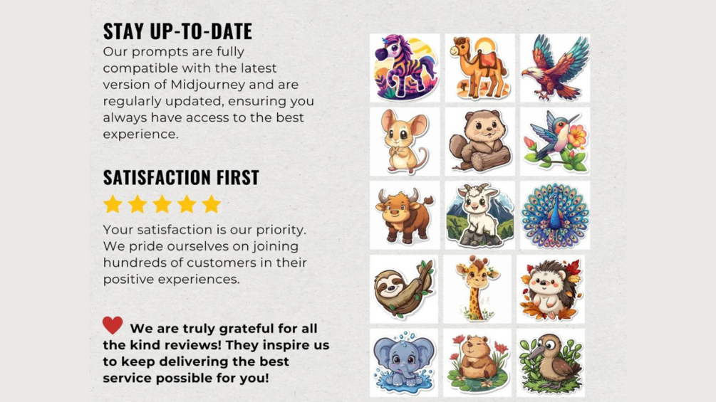 • Japanese: "かわいいカワイイステッカー300+ ミッドジャーニープロンプト"