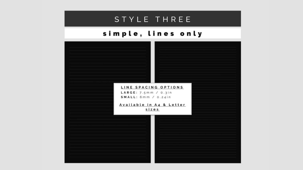 - Pen Friendly: The white lines are optimized to guide your writing without overpowering your gel pens, metallic markers, or white charcoal pencils.