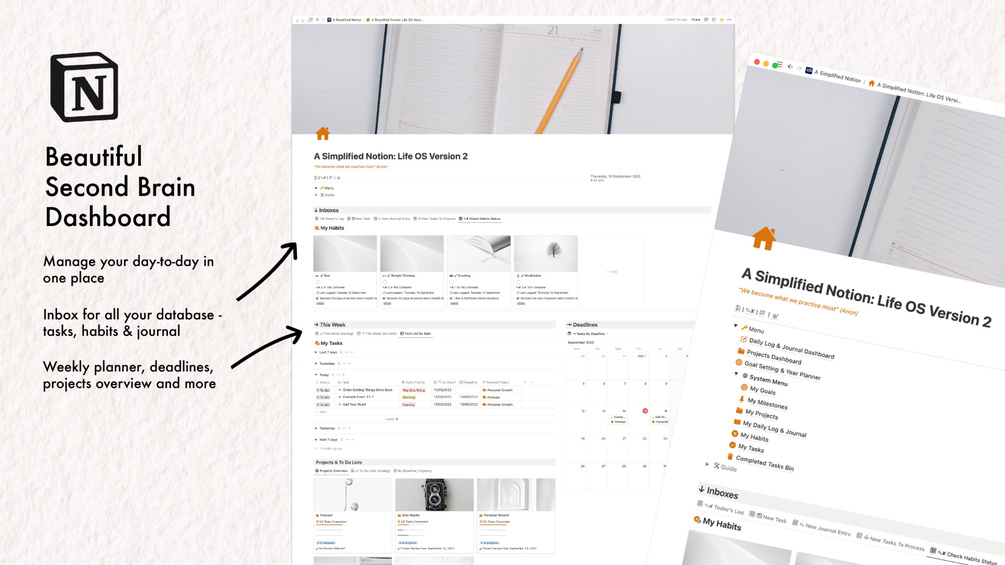 With 25+ interconnected templates included and a live and dynamic homepage dashboard that ties it all together – this is the only template you’ll need to centralize everything in your life.