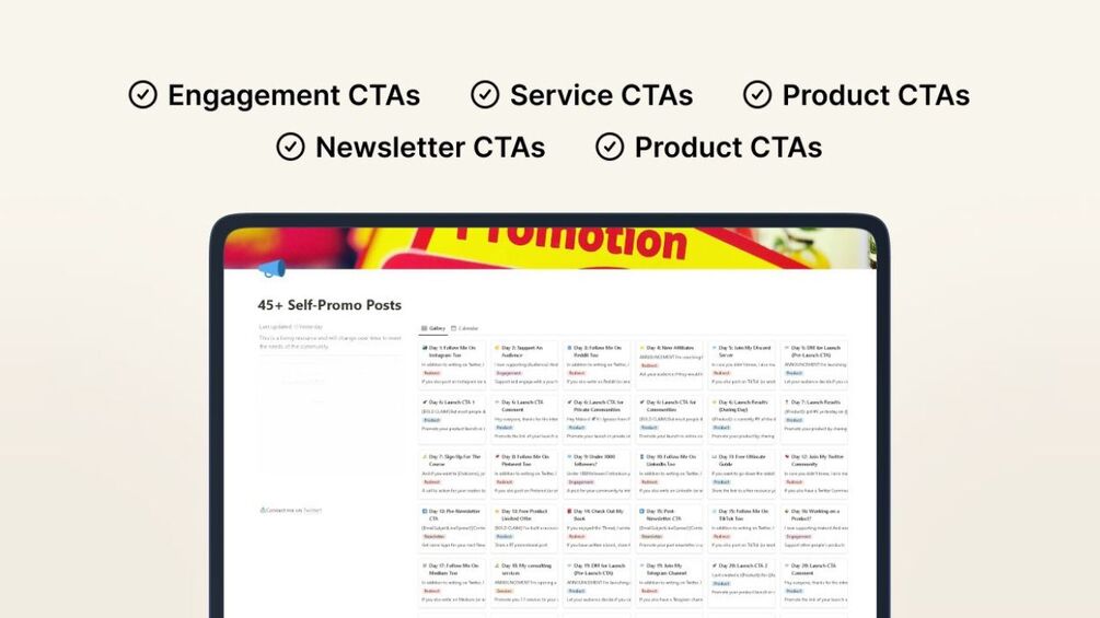 The 45+ Self-Promo Posts Templates is not just a product, it's a transformation in the way you create, promote, and engage. Curated specifically for creators, entrepreneurs, and businesses, these templates help you craft compelling CTAs without the guesswork and cognitive load.