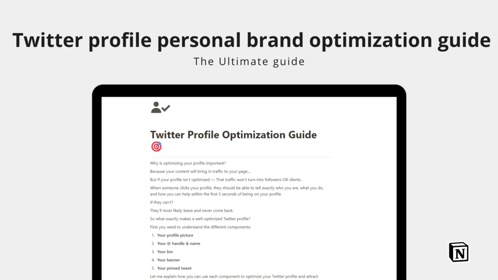 This Twitter Profile Optimization Guide emphasizes the importance of optimizing your profile to attract followers and potential clients. It outlines five key components that contribute to a well-optimized Twitter profile: