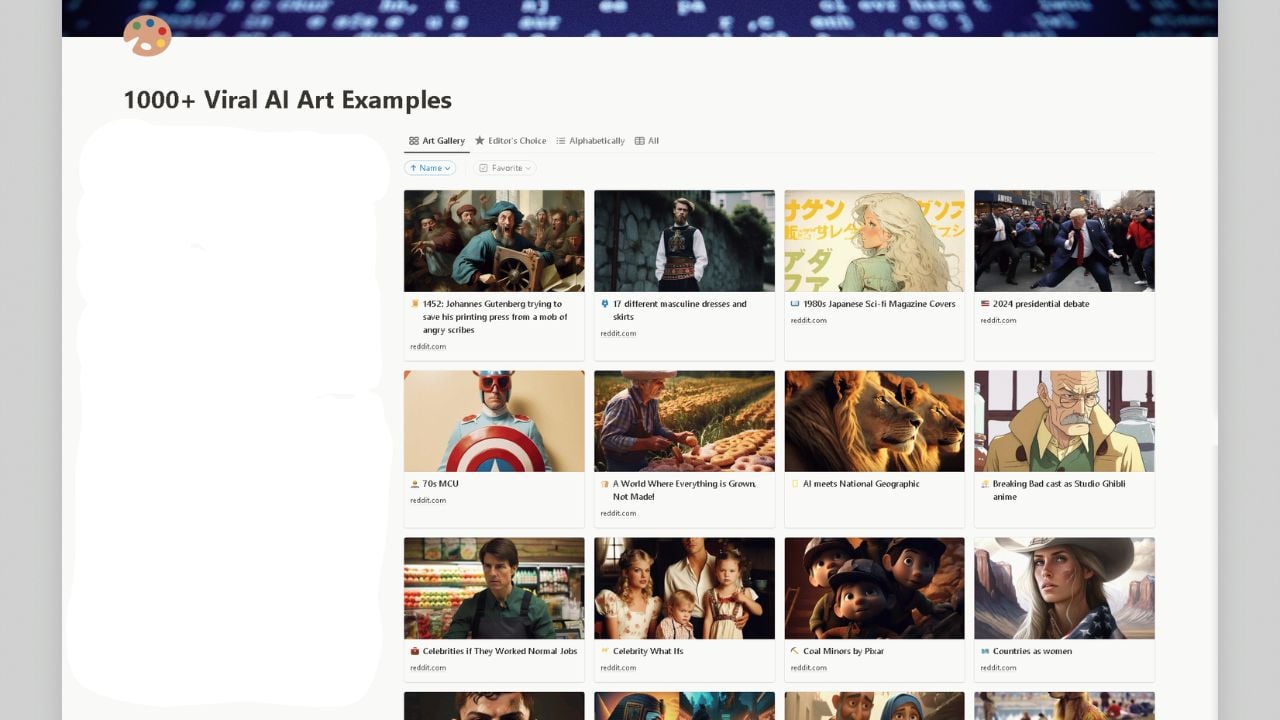 - 1000+ Viral AI Art Examples is a premium digital download offering an exhaustive collection of the most viral and impactful AI art on the internet – a valuable asset for anyone wishing to delve deeper into the world of AI artistry.